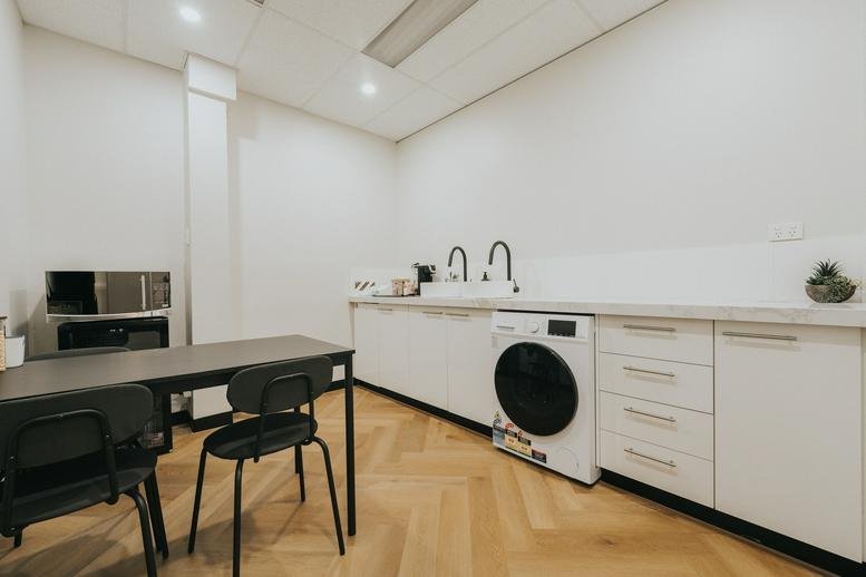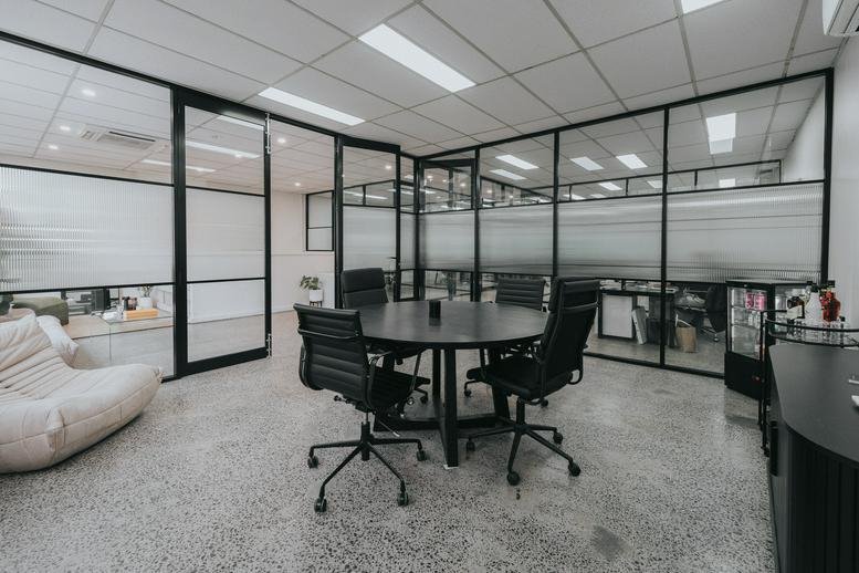 Membership is offered on a six-month term, providing access to a dedicated meeting room, printing services, an on-site coffee shop, and a sophisticated client lounge. Reserved parking is also included. The setting is well-suited for creative design, therapeutic practices, architecture, legal and accounting services, conveyancing, financial advisory, and digital marketing. Currently, only three private offices and one consulting room are available.