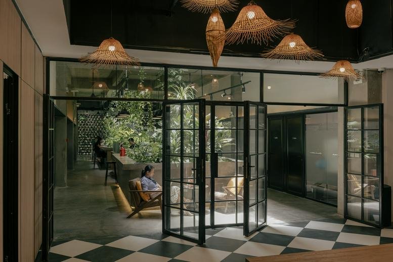 Positioned in a central Ho Chi Minh City district, this workspace replaces solid partitions with transparent entrances. The structure was raised to introduce an overhead source of natural light, while a selection of local flora has been integrated indoors. Travel time to Tan Son Nhat International Airport generally falls between eighteen and twenty-five minutes, depending on traffic conditions.