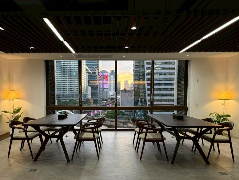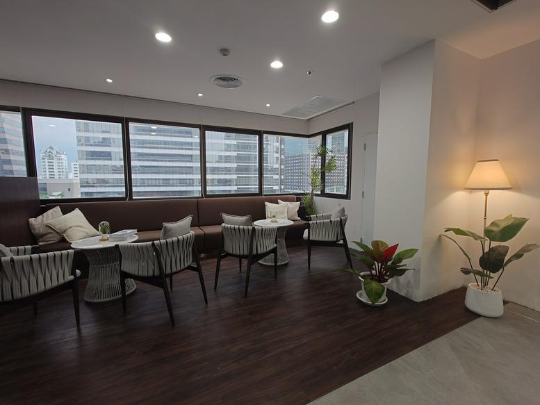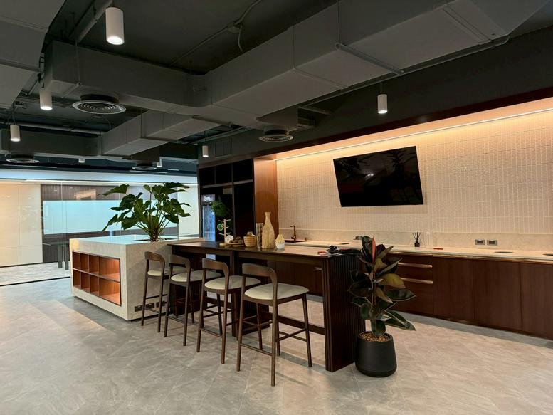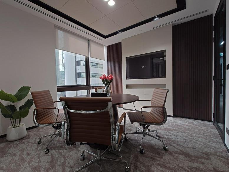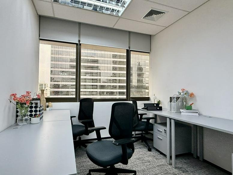 The setup includes meeting spaces ready for team sessions, a shared kitchen, and essential printing and mail processing services. Climate-controlled offices provide a comfortable environment, featuring city views and secure CCTV monitoring to provide a reliable base for hosting clients.